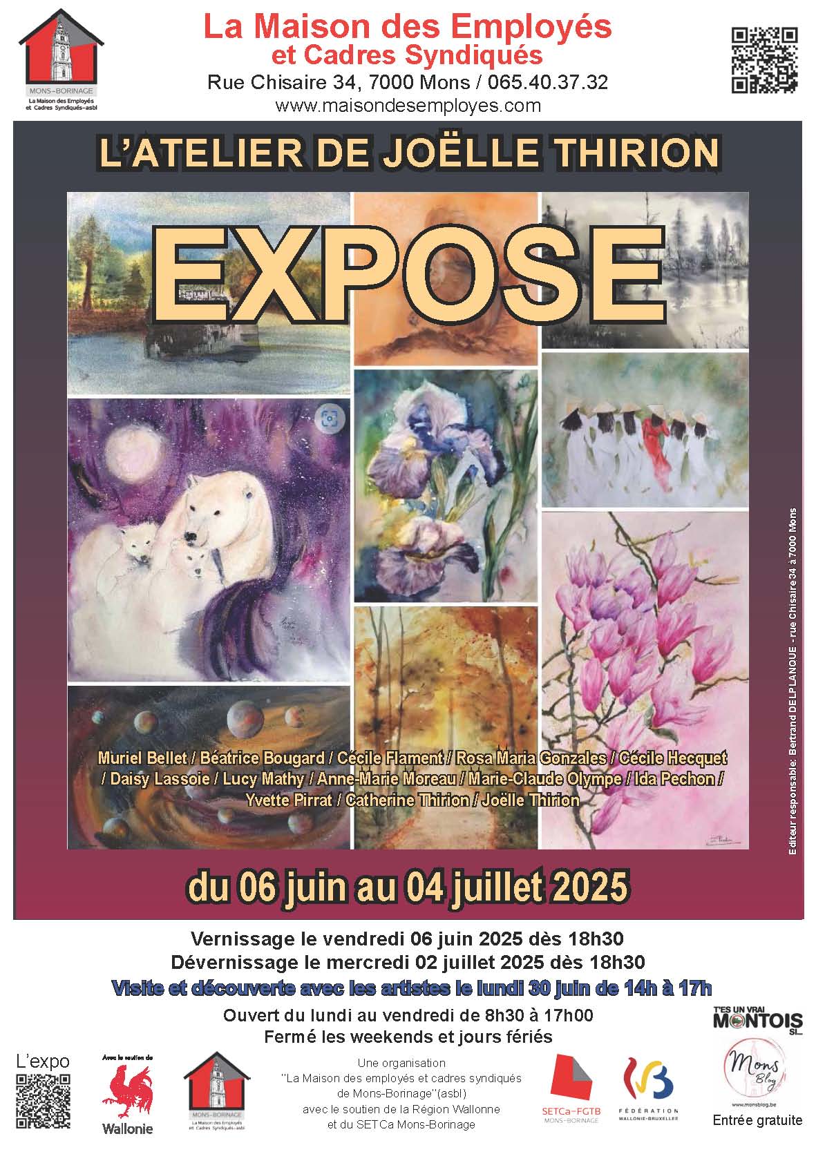 Exposition accessible du lundi au vendredi de 8h30 à 17h00 (rdv conseillé)