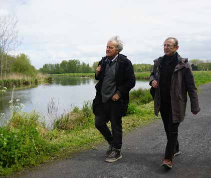 Au sortir des bois, le voici à l’écluse de Warlaing. C’est au bord de la Scarpe qu’il va continuer de cheminer, vers l’ouest. On peut déjà repérer des bâtiments civils ou religieux qui existaient à son époque. Et surtout de belles censes où il s’est peutêtre réfugié. On sait en effet qu’il a donné des dessins en échange de nourriture!
