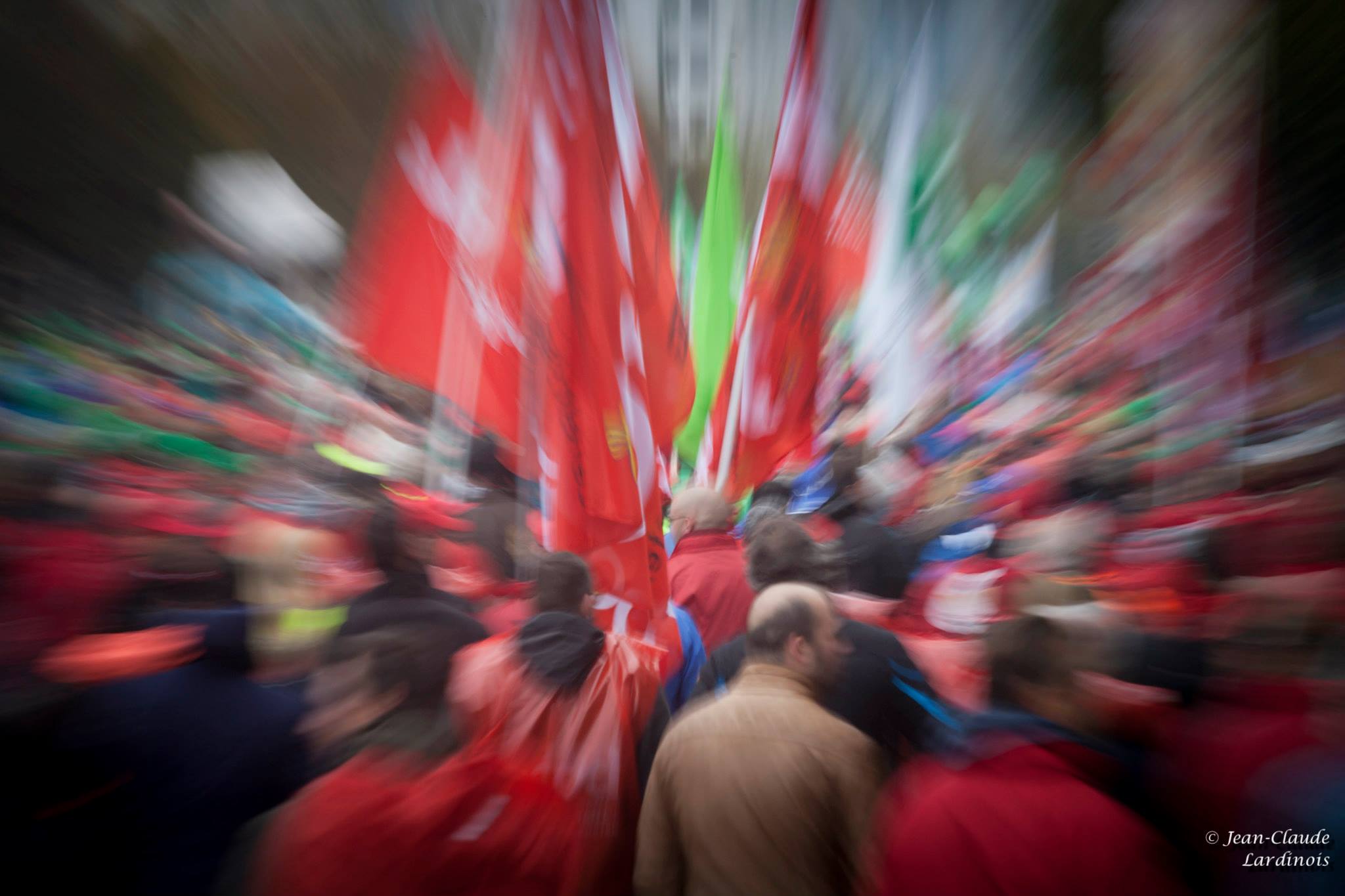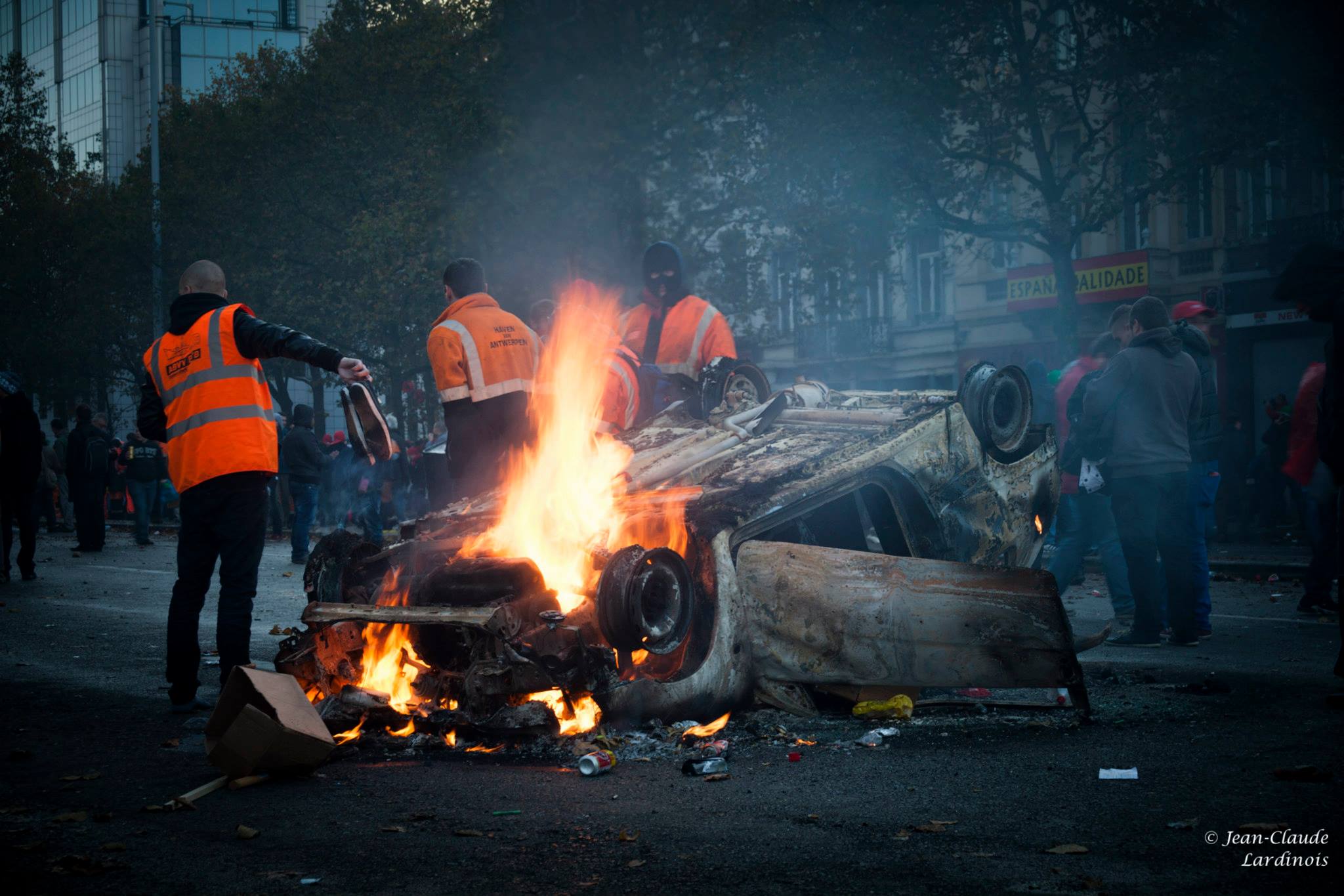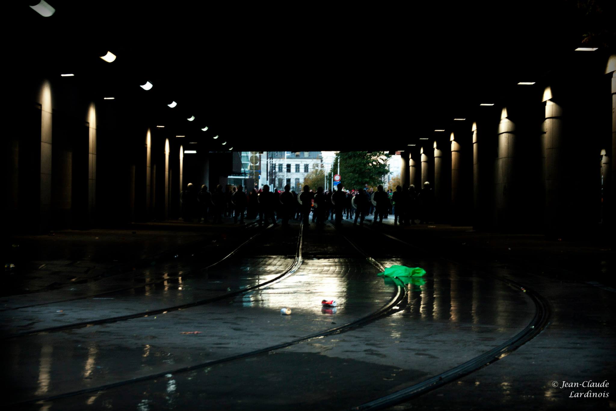 JCL : Alors, deux réponses à tes deux questions…. Pourquoi la manif ? J’ai senti que ce jour-là serait un jour historique. Je suis parti dès 05 heures du matin, avec un boîtier, trois batteries et du café. Une fois dans le train, avec les manifestants partis de la gare de Ath, j’ai senti que quelque chose de grand, du point de vue humain et social, allait se produire. Il y avait un mouvement global, une fusion des idées mais aussi beaucoup de colère contenue, beaucoup d’émotions, des rires et des larmes…