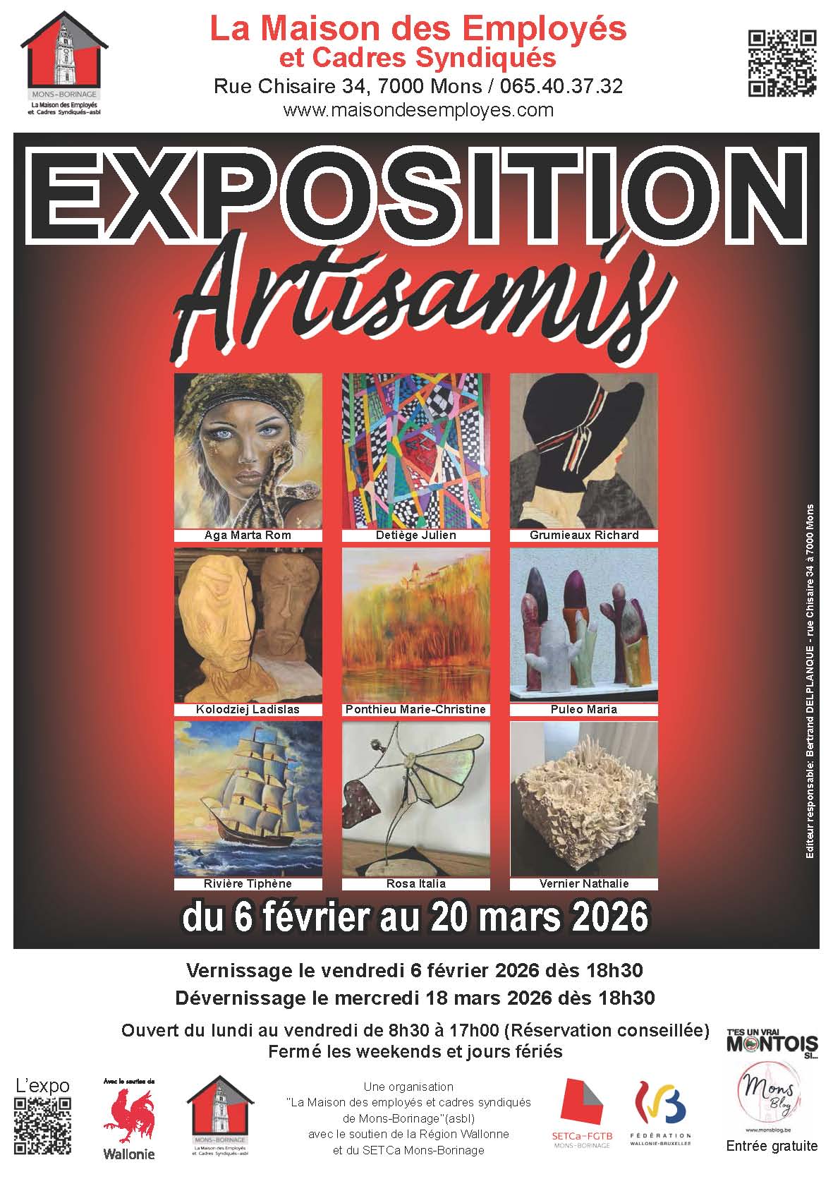 Exposition accessible du lundi au vendredi de 8h30 à 17h00 (rdv conseillé)