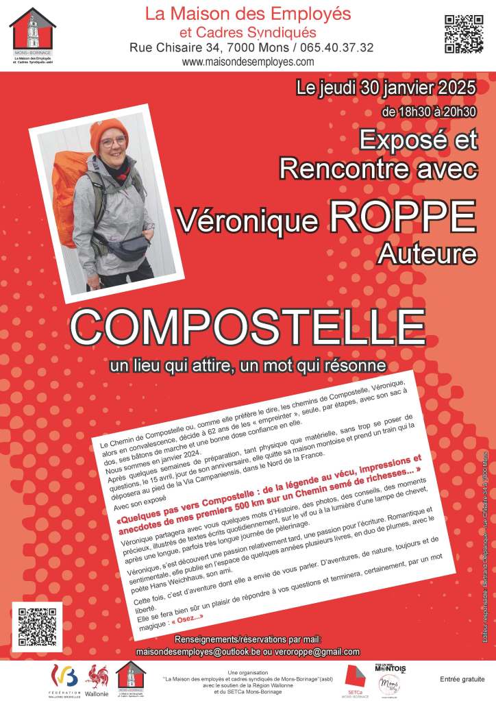 Le Chemin de Compostelle ou, comme elle préfère le dire, les chemins de Compostelle, Véronique, alors en convalescence, décide à 62 ans de les « empreinter », seule, par étapes, avec son sac à dos, ses bâtons de marche et une bonne dose confiance en elle.
