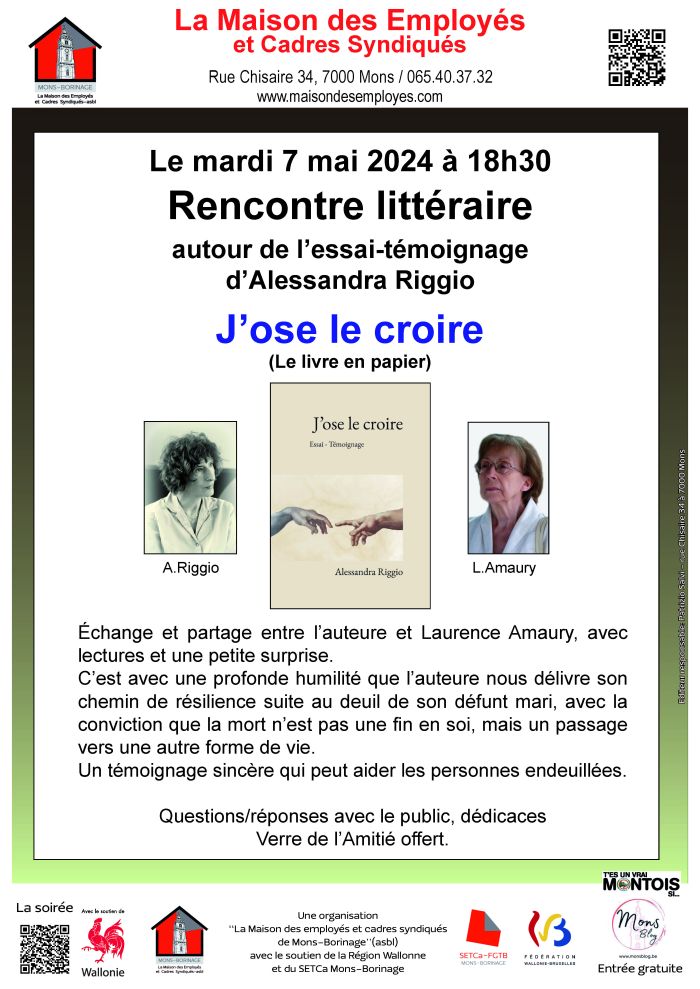 Côté publications, d’une part « Les petites histoires hasardeuses – Gourmandises écologiques et philosophiques » (Éditions Le Lys Bleu – 2023) et d’autre part, un essai-témoignage « J’ose le croire… » (Le Livre en Papier – 2023), évoquant les mondes invisibles.