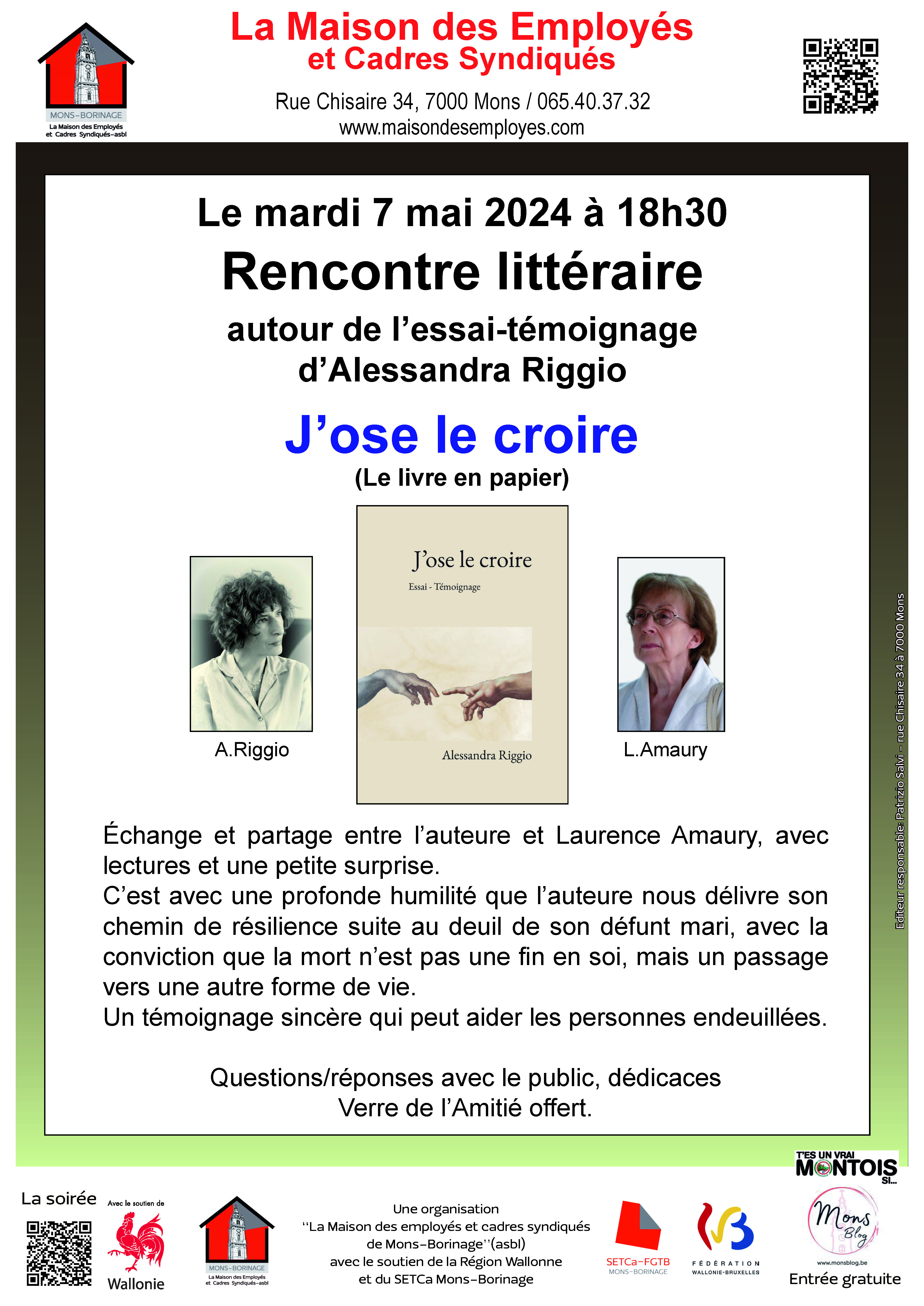 Côté publications, d’une part « Les petites histoires hasardeuses – Gourmandises écologiques et philosophiques » (Éditions Le Lys Bleu – 2023) et d’autre part, un essai-témoignage « J’ose le croire… » (Le Livre en Papier – 2023), évoquant les mondes invisibles.