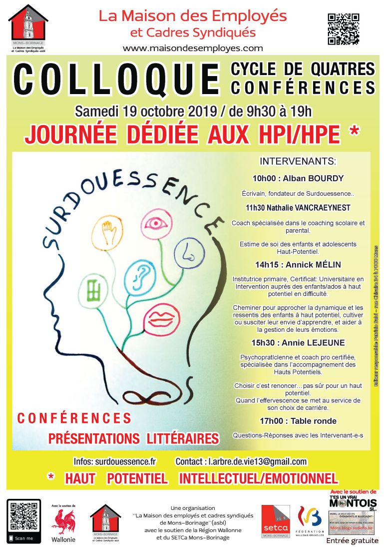 C’est une manifestation qui propose de venir explorer la richesse de l’univers atypique des surdoués à travers différents prismes et regards croisés. La thématique est abordée sous les angles de la psychologie, des neurosciences, de l’éducation, de la philosophie, de la thérapeutique, de l’intégration sociale et de l’expression artistique.
